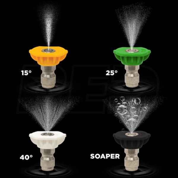 - Includes 4 quick-connect nozzles in 0°, 15°, 40°, and soap nozzle
