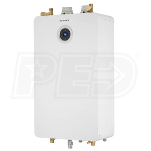 - Bosch Greentherm water heaters come with a flexible and compact plug n' play design, top hydraulic connections, and bottom flush ports making them perfect to replace old tank-type heaters.