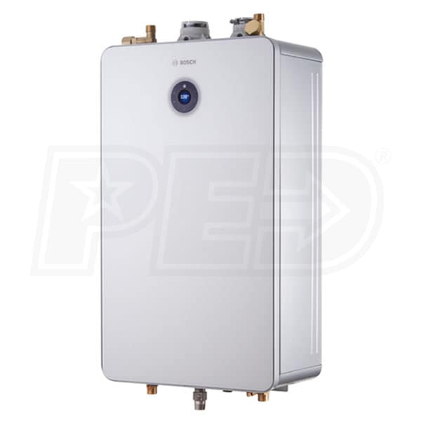 - Bosch Greentherm water heaters come with a flexible and compact plug n' play design, top hydraulic connections, and bottom flush ports making them perfect to replace old tank-type heaters.