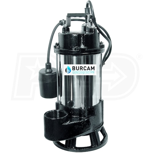 Burcam Pumps 3/4 HP Heavy Duty Cast Iron Stainless Steel Sewage Pump (2") w/ Piggyback Tether Float