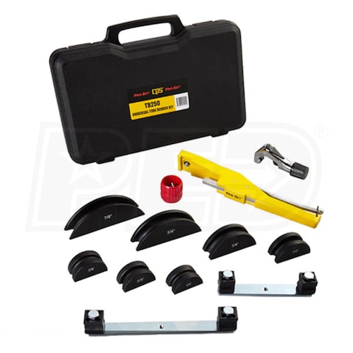 The CPS TB250s universal kit bends tube from 1/4" to 7/8". It features a metal ratcheting system and mandrel built for longevity.