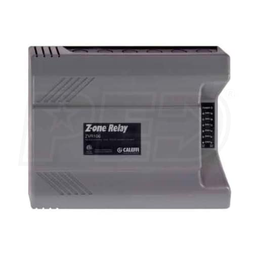 The Caleffi ZVR106 is a zone valve and boiler operating control operated by low voltage thermostats or controllers. Controlling up to six zone valves, the ZVR106 is a convenient solution for valve control in multi-zone hydronic heating systems. In addition, a system pump and secondary pump is turned on when any zone calls for heat. The ZVR106 can also be used to operate a primary DHW pump.