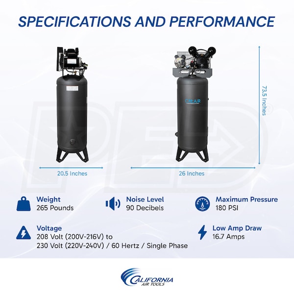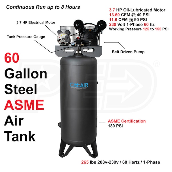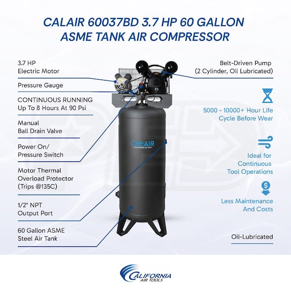 California Air Tools CALAIR 60037BD 3.7HP 60-Gallon Single-Stage Air Compressor (208/230V 1-Phase)