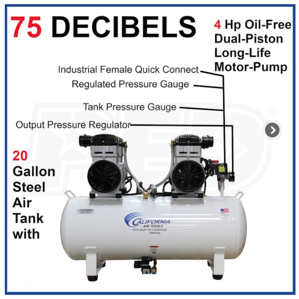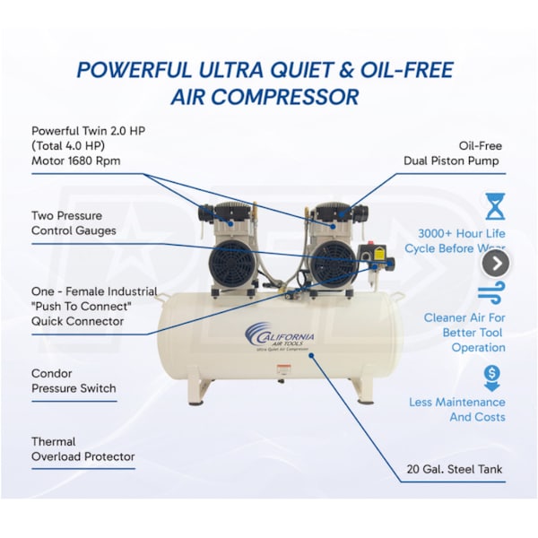 California Air Tools SP Ultra Quiet & Oil-Free 4-HP 20-Gallon Duplex Air Compressor (220V 1-Phase)