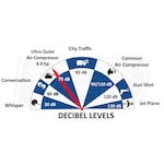 Sound levels are measured in decibels (dB). The lower the decibel rating, the less noise the product makes. As an example, a ticking watch is 20 dB while on the other end of the scale, a lawn mower is around 90 dB.