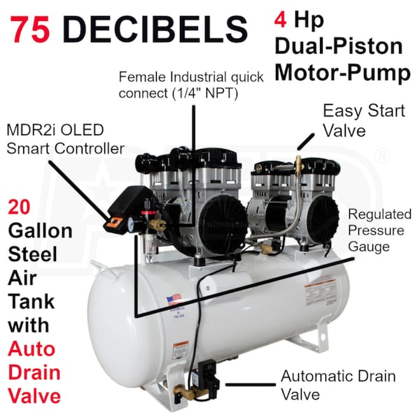 California Air Tools SP Ultra Quiet & Oil-Free 4-HP 20-Gallon Duplex Air Compressor w/ Smart Controller & Auto Drain (220V 1-Phase)
