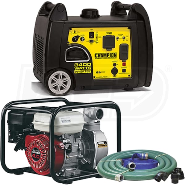 • Champion 3100 Watt Inverter Generator & Wayne 160 GPM Honda GX 2" Semi-Trash Water Pump W/ Hose Kit