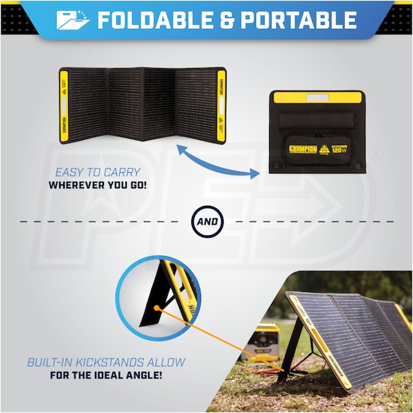 Champion 120-Watt Portable Foldable Solar Panels w/ Kickstand & 10' Extension Cable