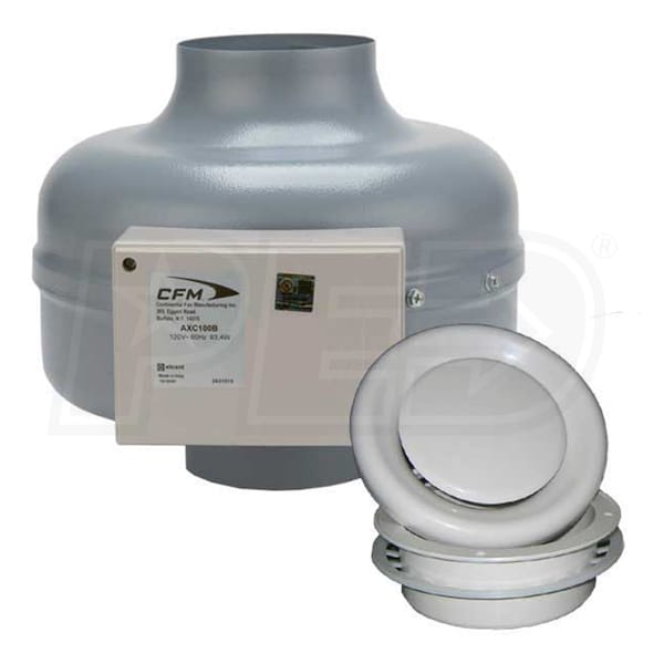 DX200-ES adjustable grille bathroom ventilation kit attacks moisture at the source. Kit includes 8" AXC fan, mounting brackets, 2 GR adjustable grille/collars, 7 gear clamps and a Y-fitting. An AXC In-Line Duct Fans provides exhaust that is two to four times greater than traditional bathroom fans. The remote mounted design is suitable for direct shower ventilation and for use with multiple ventilation points. Kit includes AXC fan, mounting brackets, GR adjustable grille/collar and gear clamps. Whether you are remodeling, building, or simply trying to solve an indoor air quality problem, Continental Fan has the solution for all your ventilation needs.