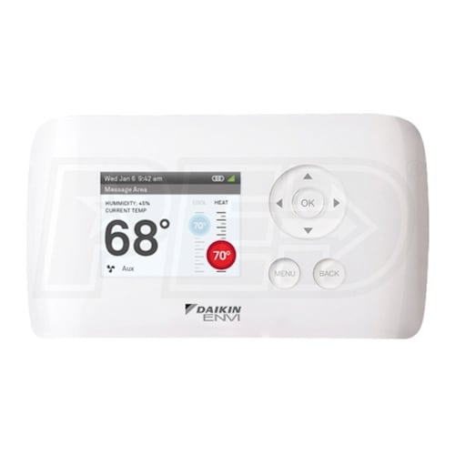 The Daikin ENVi thermostat gives you an unparalelled level of control over how your mini split system operates, whether you are inside or away from your home. Fullly featured 7-day programmability gives you the ability to heat or cool your home on a schedule that fits yours and your families. The built in touchscreen gives you a substantial degree of control over your thermostat, and mobile and web based apps allow you to control your home's temperature from a distance.