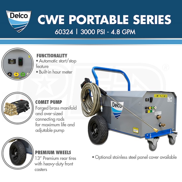 Delco CWE Portable 3000 PSI - 4.8 GPM (Electric - Cold Water) Pressure Washer (230V / 460V 3-Phase)