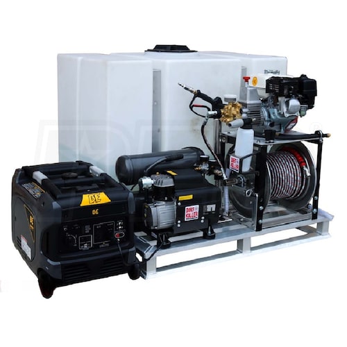 Dirt Killer Big Lil Feller 2500 PSI (Gas - Cold) Detail Skid Pressure Washer w/ Air Compressor, Generator, 200-Gal Tank, Kranzle Pump & Honda GX200 Engine