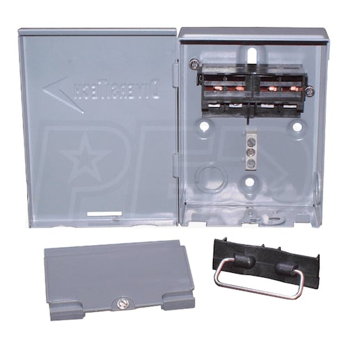 The Diversitech non-fusible disconnect switch has a low profile metal case with a 60 Amp non-fusible feature. It also has a side opening door with a full dead front. The switch is protected from rain and sleet by NEMA 3R housing.