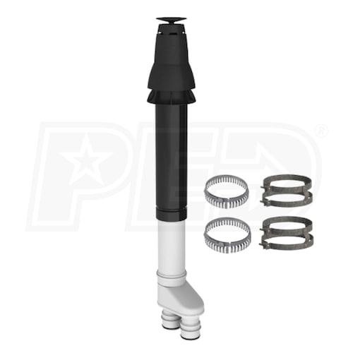 DuraVent PolyPro is a polypropylene vent pipe system for use with water heaters, condensing boilers, and warm air furnaces. Easier and faster to install than PVC, PolyPro is engineered to save time and money. It is designed to work with existing B Vent systems by using them as a chase, making it the perfect choice for retrofitting older systems. This is a vertical termination combining separate exhaust and intake pipes into a single concentric vent.