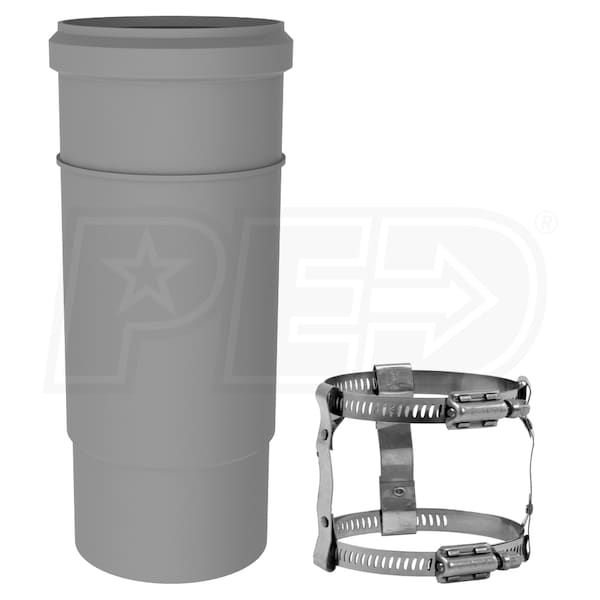 - The adjustable pipe section fits over a length of straight PolyPro Duravent piping and extends its length by 1-3/4" to 6-1/4". An adapter clamp is included with the pipe.