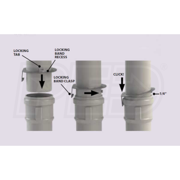 - PolyPro uses a new locking system featuring a locking tab on the male end of the pipe and locking band that ensures a secure connection at pipe joints. This eliminates the messy and time consuming gluing process seen with other types of venting.