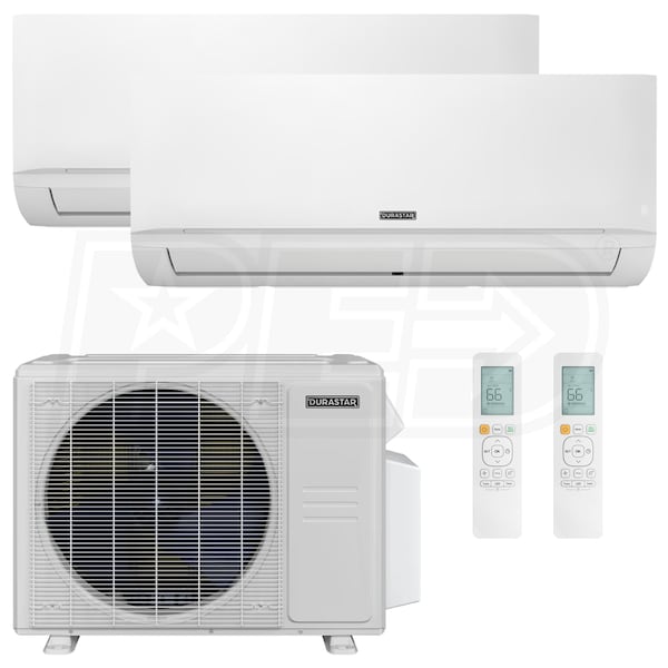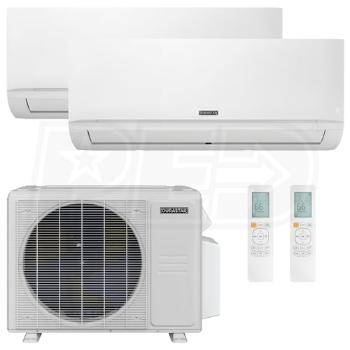 Durastar Ductless Mini Split Heat Pump System - 2-Zone - 18k BTU Outdoor - 9k + 12k Indoor - 23.0 SEER2 - R-454B