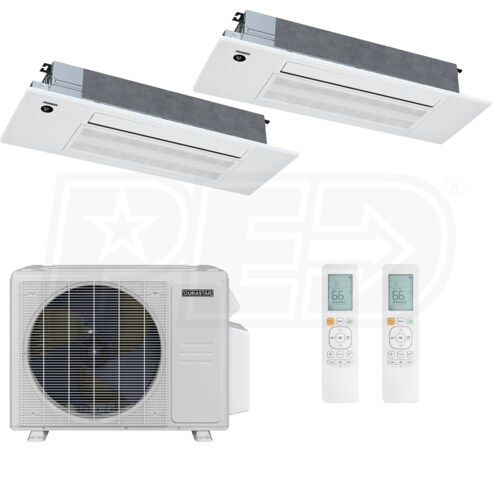 Durastar One-Way Ceiling Cassette Mini Split Heat Pump System - 2-Zone - 18k BTU Outdoor - 6k+9k Indoor - 23.0 SEER2 - R-454B