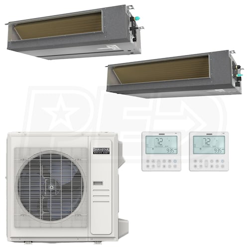 Durastar Sirius Heat™ Concealed Duct Mini Split Heat Pump System - 2-Zone - 36k BTU Outdoor - 18k+24k Indoor - 19.4 SEER2 - R-454B