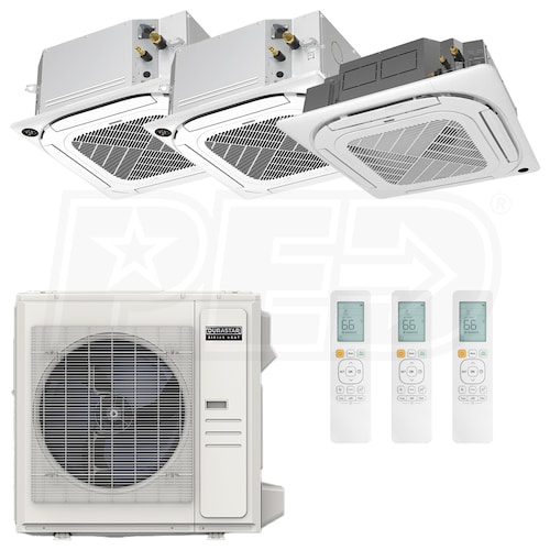Durastar Sirius Heat™ Ceiling Cassette Mini Split Heat Pump System - 3-Zone - 36k BTU Outdoor - 9k+9k+24k Indoor - 21.5 SEER2 - R-454B