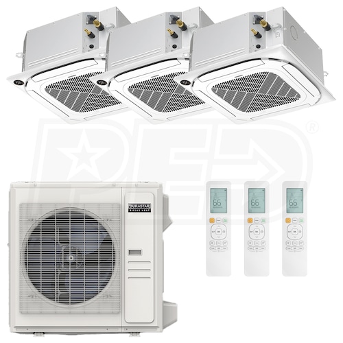 Durastar Sirius Heat™ Ceiling Cassette Mini Split Heat Pump System - 3-Zone - 36k BTU Outdoor - 12k+12k+18k Indoor - 21.5 SEER2 - R-454B