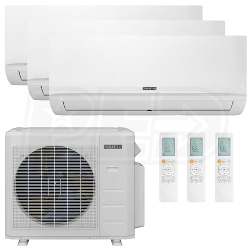 Durastar Ductless Mini Split Heat Pump System - 3-Zone - 36k BTU Outdoor - 6k + 9k + 18k Indoor - 23.1 SEER2 - R-454B