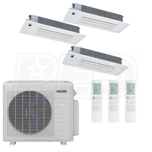 Durastar One-Way Ceiling Cassette Mini Split Heat Pump System - 3-Zone - 36k BTU Outdoor - 12k+12k+18k Indoor - 23.1 SEER2 - R-454B