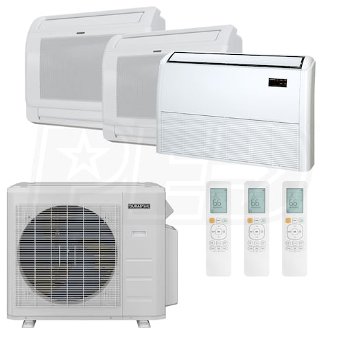 Durastar Floor Mounted Mini Split Heat Pump System - 3-Zone - 36k BTU Outdoor - 9k+9k+24k Indoor - 23.1 SEER2 - R-454B