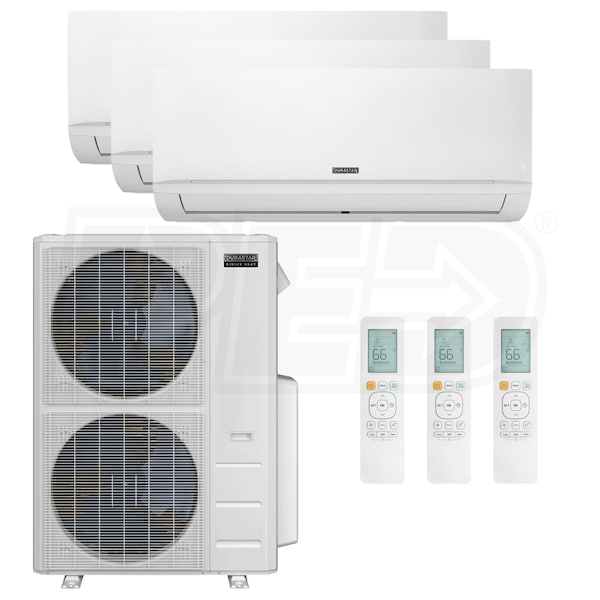 Durastar Sirius Heat™ Ductless Mini Split Heat Pump System - 3-Zone - 55k BTU Outdoor - 9k + 9k + 33k Indoor - 21.4 SEER2 - R-454B