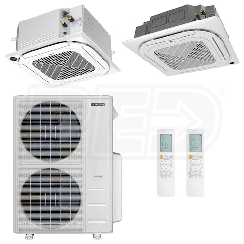Durastar Ceiling Cassette Mini Split Heat Pump System - 2-Zone - 48k BTU Outdoor - 18k+24k Indoor - 21.3 SEER2 - R-454B