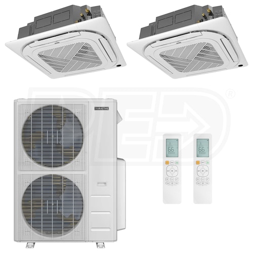 Durastar Ceiling Cassette Mini Split Heat Pump System - 2-Zone - 48k BTU Outdoor - 24k+24k Indoor - 21.3 SEER2 - R-454B