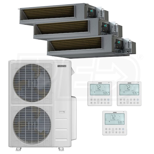 Durastar Concealed Duct Mini Split Heat Pump System - 3-Zone - 48k BTU Outdoor - 18k+18k+18k Indoor - 20.4 SEER2 - R-454B