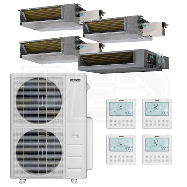 Durastar Concealed Duct Mini Split Heat Pump System - 4-Zone - 60k BTU Outdoor - 12k+12k+12k+18k Indoor - 18.0 SEER2 - R-454B
