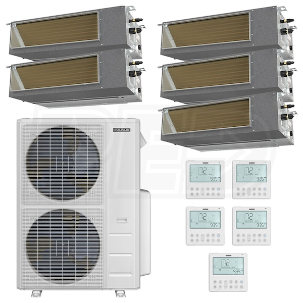 Durastar Concealed Duct Mini Split Heat Pump System - 5-Zone - 60k BTU Outdoor - 9k+9k+9k+9k+12k Indoor - 18.0 SEER2 - R-454B