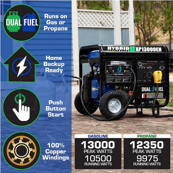 - DuroMax XP13000EH Dual Fuel Portable Emergency Generator
