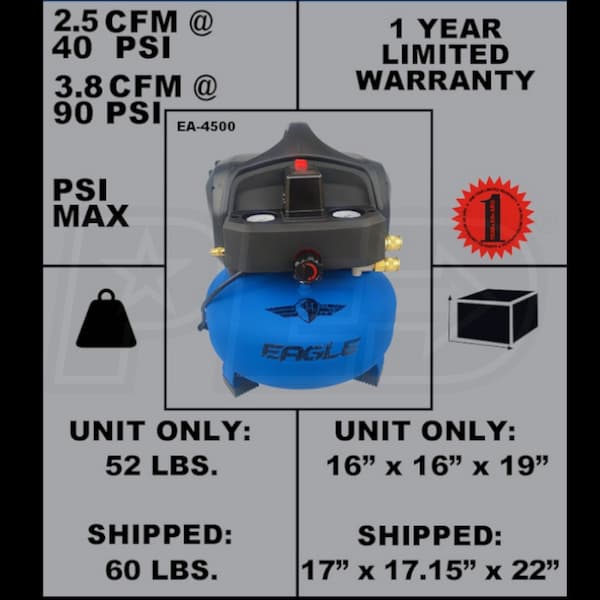 - Eagle 6-Gallon Portable Electric Air Compressor
