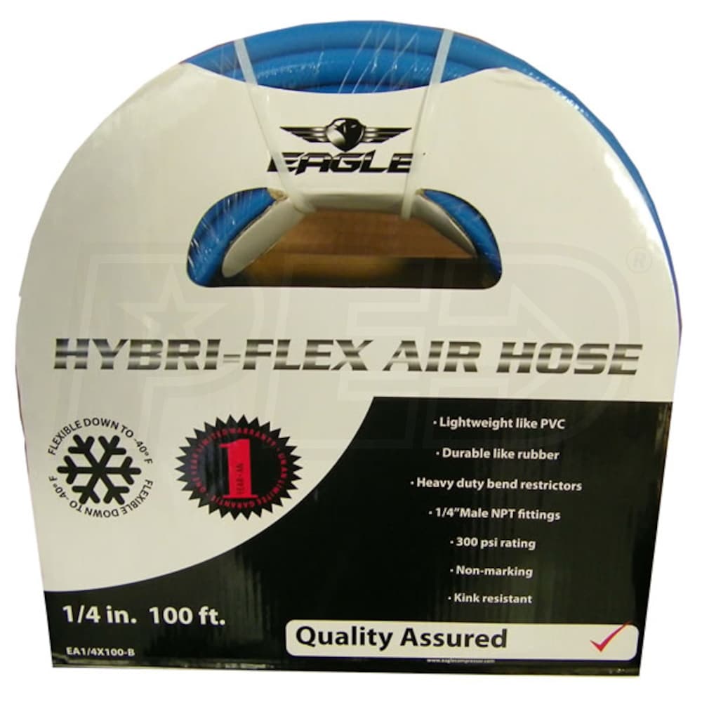 Eagle Hybri-Flex 1/4" x 100' Air Hose w/ 1/4" MNPT Fittings
