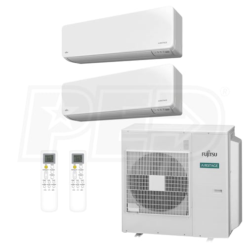 Fujitsu Wall Mount 2-Zone System - 45,000 BTU Outdoor - 24k + 24k Indoor - 20.0 SEER2