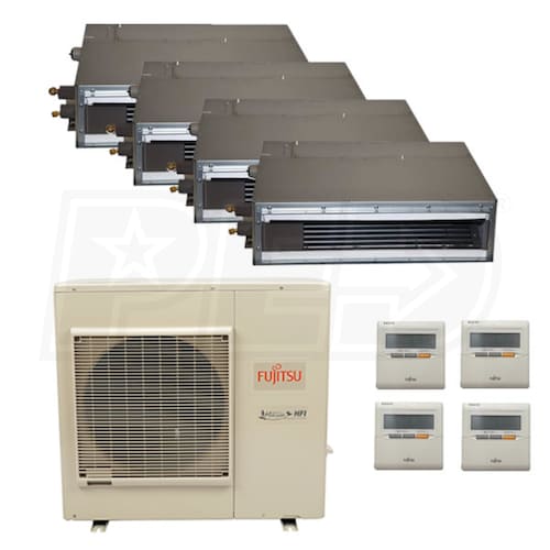 Fujitsu Concealed Duct 4-Zone System - 36,000 BTU Outdoor - 7k + 7k + 7k + 12k Indoor - 16 SEER