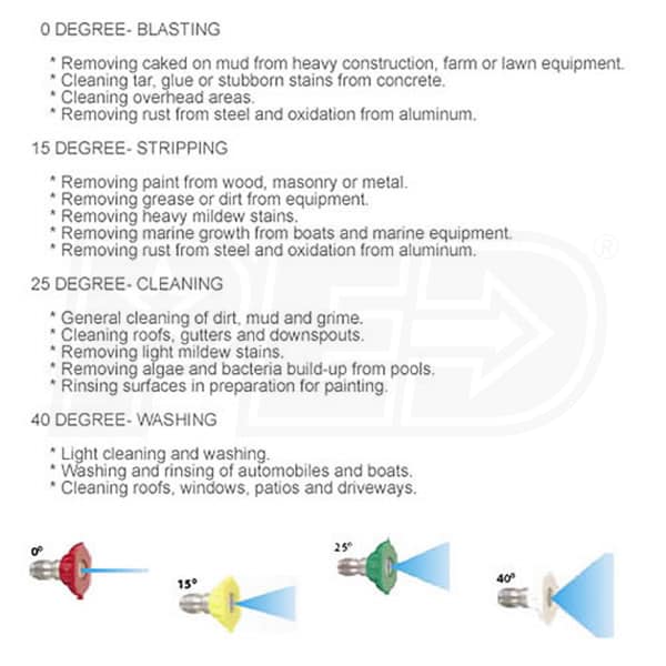 Match your pressure washer's PSI and GPM in blue. The correct orifice size will be listed in the grey area.