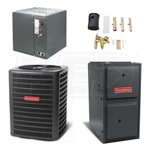 Goodman - 2.5 Ton Cooling - 40k BTU/Hr Heating - Air Conditioner + 2 Stage Furnace Kit - 13.0 SEER - 96% AFUE - For Upflow Installation