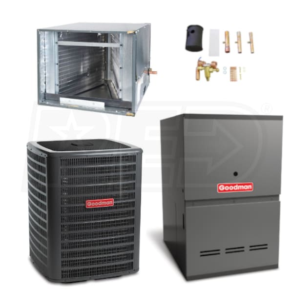Goodman - 2.0 Ton Cooling - 100k BTU/Hr Heating - Two-Stage Heat Pump + Furnace Kit - 15.5 SEER - 80% AFUE - Horizontal