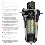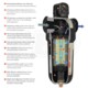 - Particle removal down to 0.01 micron; rated for 45 SCFM at 100 PSI at 100°F