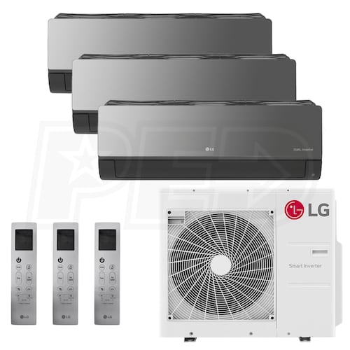 LG Art Cool Mirror Ductless Mini Split LGRED° Heat Pump System - 3-Zone - 24k BTU Outdoor - 9k + 9k + 9k Indoor - 21.0 SEER2 - R-32