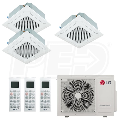 LG Ceiling Cassette Mini Split Heat Pump System - 3-Zone - 24k BTU Outdoor - 7k + 7k + 12k Indoor - 22.5 SEER2 - R-32