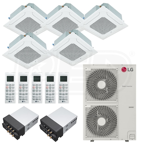LG Ceiling Cassette Mini Split Heat Pump System - 5-Zone - 54k BTU Outdoor - 7k + 7k + 9k + 12k + 18k Indoor - 20.6 SEER2 - R-32