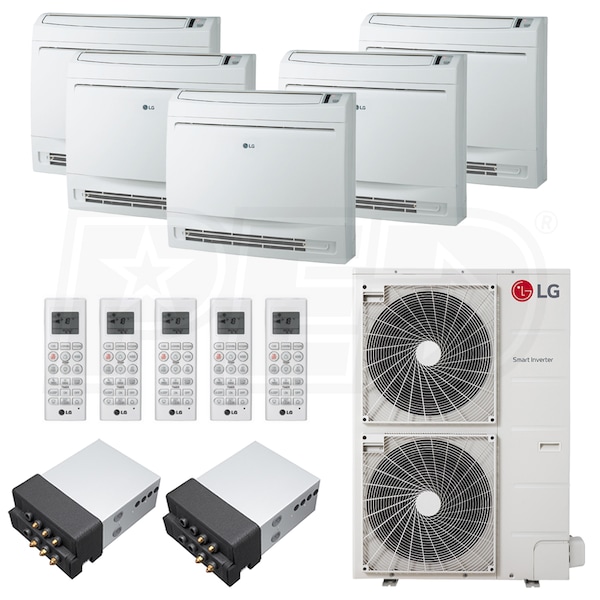 LG Low Wall Console Ductless Mini Split Heat Pump System - 5-Zone - 60k BTU Outdoor - 15k + 15k + 15k + 15k + 15k Indoor - 20.5 SEER2 - R-32