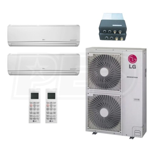 LG Wall Mounted 2-Zone System - 60,000 BTU Outdoor - 24k + 24k Indoor - 20.5 SEER2