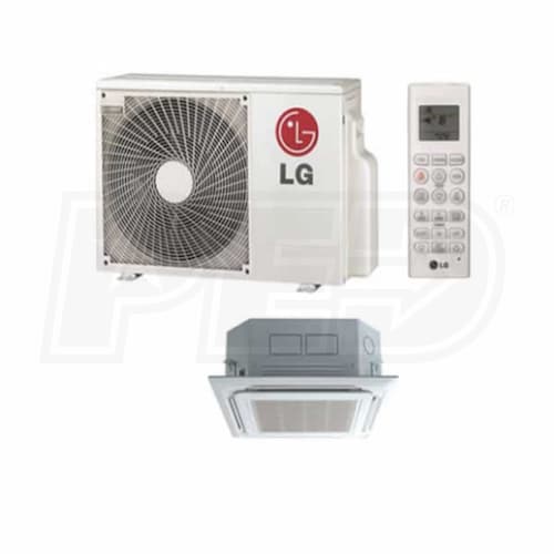 LG's devotion to providing efficient ductless solutions can be seen across their entire catalog. LG's Four-Way Ceiling Cassette systems, such as this LC127HV4, have several advantages over wall mounted systems. By recessing the LCN127HV4 indoor unit, a 7/8" thick grille is the only part of the equipment that stays visible. Unobtrusive comfort isn't the only advantage of a ceiling cassette; with four air flow directions, the LC127HV4 provides excellent coverage for consistent levels of comfort. . If you're looking for a low-profile alternative to wall mounted ductless heat pump systems, LG's Four-Way Ceiling Cassettes are a great choice.