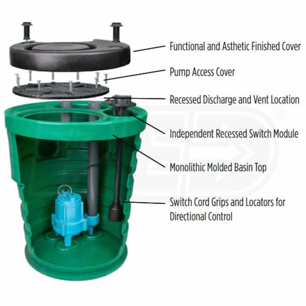 Little Giant 9JF3V2D - Pit Plus® Jr. 4/10 HP Premium Simplex Sewage System w/ Tether Float Switch (3" Vent, 2" Discharge)